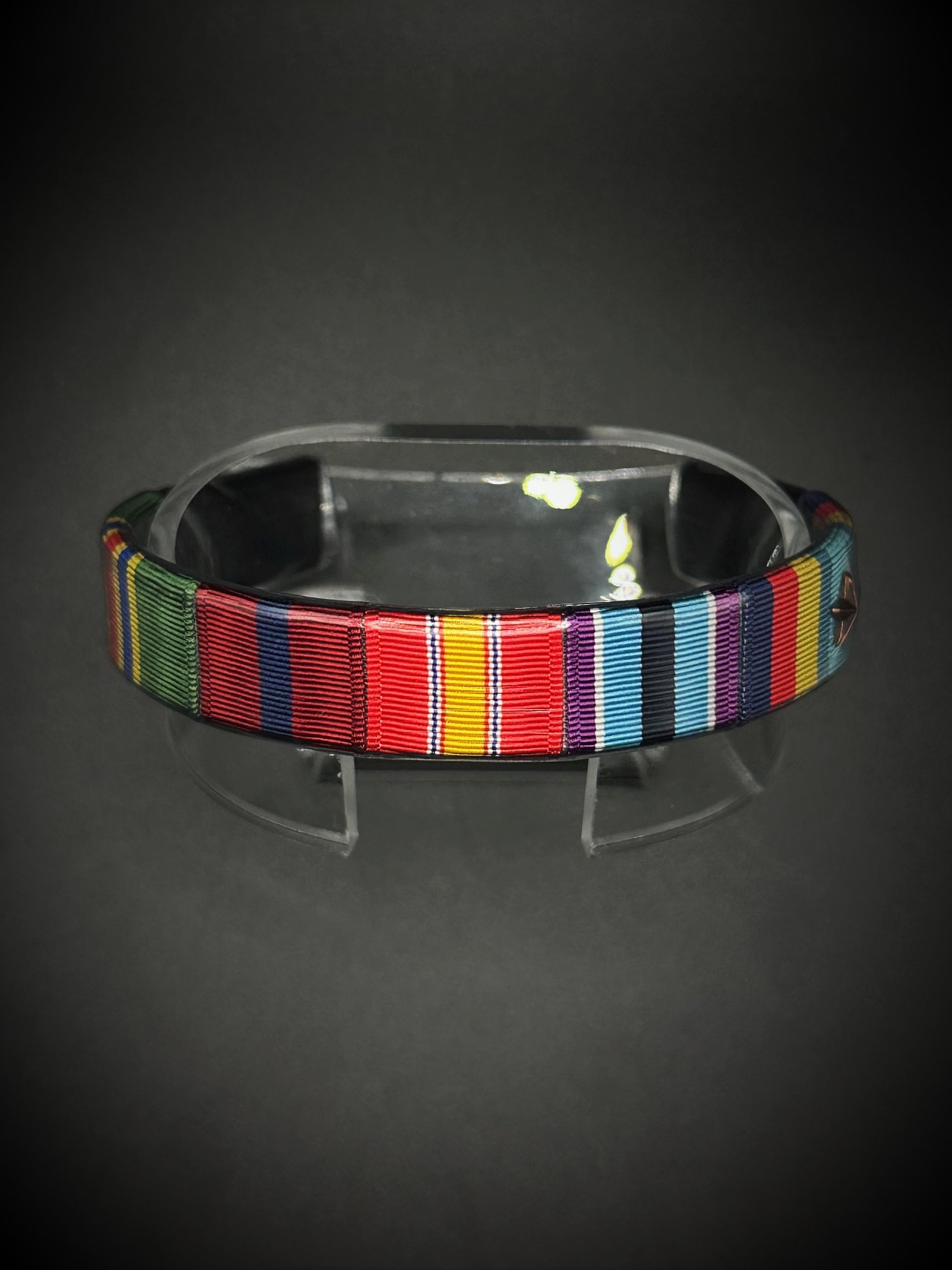 Picture shown: Black Bracelet with USMC Meritorious Unit Commendation, USMC Good Conduct Medal, National Defense Service Medal, Humanitarian Service Medal, Sea Service Deployment Ribbon w/ 1 bronze star.